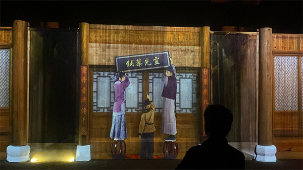 望仙谷杨府灵光药铺,在保护修缮时对府邸一楼改造,植入“仙丹灵光,药神在世”多媒体秀。是观赏者身临其境体验现场看诊、抓药。