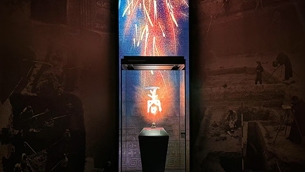 看·见殷商展览内容分为“有册有典”“青铜高峰”“居中衍大”“式范后世”四个部分,从商王世系入手,进而展示殷商时期的生产、生活、社会组织与精神生活,最后展示殷商时期在中华文明起源过程中的历史地位。在展览中,运用AI技术,使历史人物活起来,同时还包括投影、LED、OLED、互动屏等。